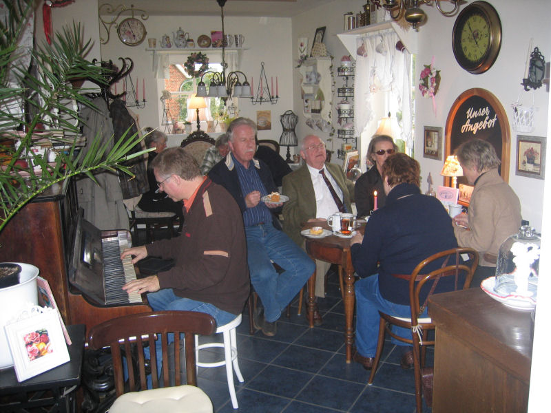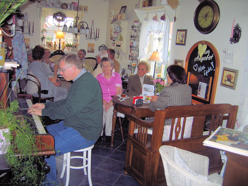 Am Samstag, dem 10. Oktober 2009 spielte auf unserem antiken Klavier Norddeutschlands ältester Caféhauspianist, Gerhard von Harscher. Gerhard von Harscher hat uns und seine zahlreichen Zuhörer zum wiederholten male mit seiner Musik verzaubert. Von russischen und spanischen Liedern, Opern, Operetten, Musicals, bis hin zu Klassik und Schlager hat er auf unserem Klavier von 1895 alles gespielt was unsere Gäste hören wollten. Vielen Dank Am Freitag, den 25.September 2009 war die Sommerpause vorbei. Peter Heller spielte kurzweiliges aus Film, Operette + Musical. Dem Publikum ist es wohl nicht so aufgefallen, wie dem Pianisten, dass das Klavier mal wieder gestimmt werden muss. Sorry Peter! Es war wieder ein stimmungsvoller Nachmittag und die zahlreichen Gäste freuten sich über musikalische Unterhaltung. Der Höhepunkt des Tages war das Zusammentreffen unser drei Künstler. Herr von Harscher löste Peter beim Klavierspiel übergangslos ab und Herr Benecken machte schon mal Werbung für seine Lesung am 31. Oktober, in dem er sehr zur Freude der Gäste ein paar Anekdoten vortrug.