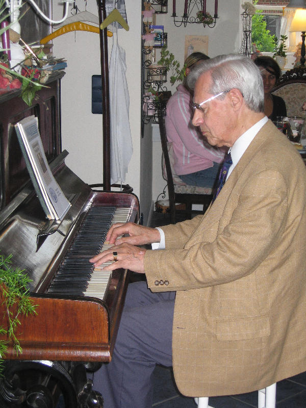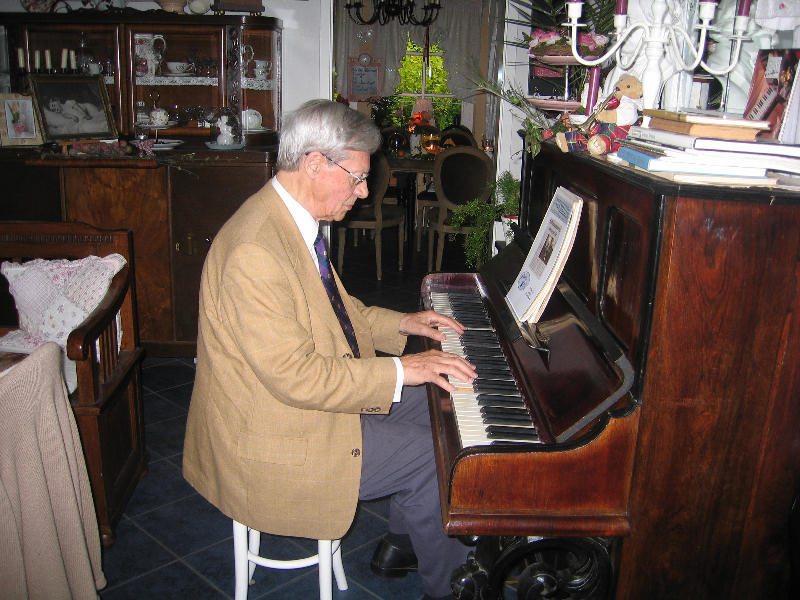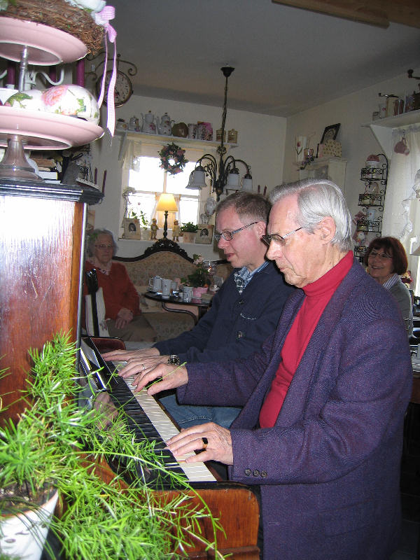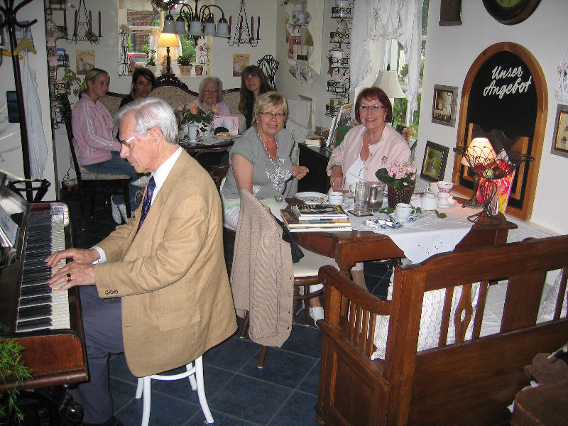 Wir freuen uns ganz besonders, dass uns am Samstag dem 9. Mai 2009 der bekannte Caféhaus-Pianist aus Meckelfeld, Gerhard von Harscher besucht hat. Trotz seiner 88 Jahre ist Gerhard von Harscher noch immer als Musiklehrer tätig und nebenbei spielt er nun auch im Nostalgie-Café. Zuletzt war Gerhard von Harscher sogar im Fernsehen, N3 zu sehen. Klavierspielen ist sein Lebenselixier und so spielt er auch auf Zuruf die gewünschte Melodie. "Russische, spanische oder italienische Lieder, Oper, Operette, Musical, aber auch Klassik und Schlager kann ich auswendig" sagt von Harscher. Vielen Dank für eine ganz besonderen Nachmittag!