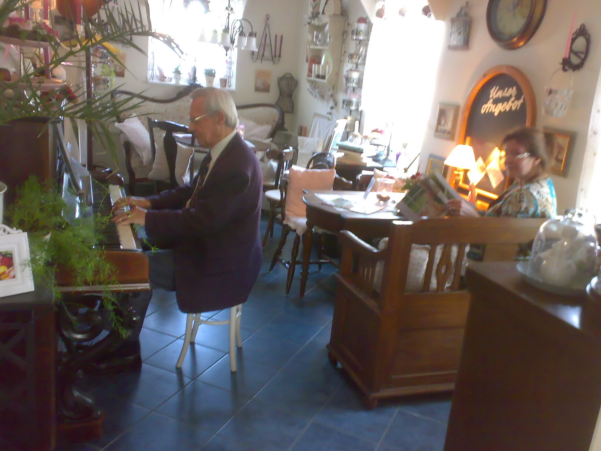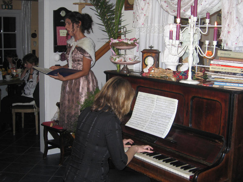 Freitag, 11.11.2011 16:00 bis 18:00 Uhr Lesung mit dem Harburger Schriftsteller Ewald Benecken. Passend zur Jahreszeit liest Herr Benecken auf seine, unseren Stammgästen bekannte besondere Art und Weise, Fröhliches und Besinnliches, Novellen und Kurzgeschichten bekannter Autoren, sowie aus seinen eigenen Werken. Während der Pausen und nach der Lesung steht Ihnen Herr Benecken für ein Gespräch zur Verfügung und signiert auch gerne sein aktuelles Buch. Freitag, der 6.Mai 2011 ab ca. 16:00 Uhr Lesung: "Der Mai ist gekommen" Der Harburger Schriftsteller Ewald Benecken liest vergnügliche Geschichten, Frühlings- und Maiengedichte berühmter Autoren Innen. Wir üblich ist der Eintritt frei, am Ende gehen wir mit dem Hut herum und sammeln für den Künstler. Klavierabend im Nostalgie Café. Freitag, 15. April ab 17:00 Uhr. Am Freitag , dem 15. April fand im Nostalgie Café ein gemütlichen Klavierabend statt. Der den Stammgästen des Cafés bereits bestens bekannte Pianist Peter A. Heller spielte Klassik, Barock und Romantik auf unserem antiken Klavier. Das Programm umfasste Stücke von Scarlatti, Mozart, Beethoven, Schumann und Ignaz Moscheles. Wir danken Peter für den gelungenen Nachmittag.