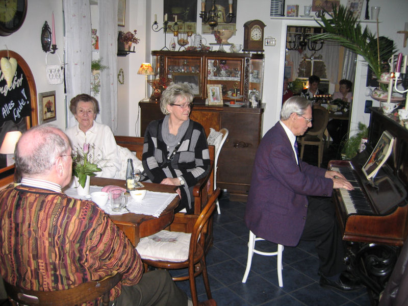 2011 Sonntag, 18.12.2011 Weihnachtliche Klaviermusik mit Gerhard von Harscher Freitag , 9.12.2011 Weihnachtliche Lesung mit Ewald Benecken am Samstag, 3.12.2011 spielt Norddeutschlands ältester Caféhauspianist, Gerhard von Harscher im Nostalgie Café auf unserem antiken Klavier von 1895. Gerhard von Harscher ist trotz seiner 90 Jahre noch aktiv als Klavierlehrer und lässt auf Zuruf die gewünschte Melodie auf dem Klavier erklingen. Russische, spanische oder italienische Lieder, Oper, Operette Musicals, aber auch Klassik und Schlager spielt er aus dem Stehgreif. Jetzt - in der Adventszeit wird wohl auch der eine oder andere weihnachtliche Klang ertönen.